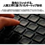 ■指先にフィットする、人間工学に基づいたキートップ形状。全てのキーに指先の丸みに沿う凹みをつけ、打ち心地の良いデザインに仕上げています。キーの役割や配置に応じて形状を最適化し、手元を見なくてもスムーズなタイピングが可能です。