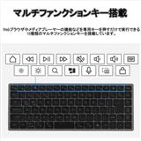 ■複数のデバイスをひとつのキーボードで操作可能。最大4台のデバイスに接続できる、マルチペアリングに対応しています。Bluetooth(R)接続で3台、USB無線2.4GHzで1台まで接続機器を本体に保存でき、使用シーンに合わせてデバイスを瞬時に切り替えられます。