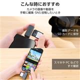 ■SDカードとmicroSDカードの2つのスロットを搭載。デジタルカメラやアクションカメラで撮影してSDカード/microSDカードに保存した画像や映像を、本製品を使ってスマートフォンやパソコンに取り込めます。編集やSNSへのアップの際に便利です。