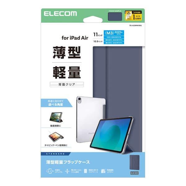 ELECOM iPad Air ケース 11インチ (M3 M2) 10.9インチ 第5 第4世代 フラップ 2アングル スタンド 軽量 ブルーグレー TB-A25MWVBG