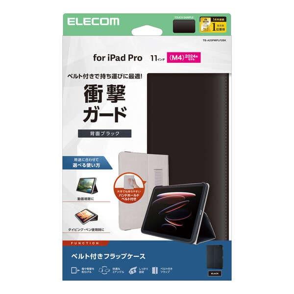 ELECOM iPad Pro ケース 11インチ ( M4 ) ベルト付きフラップ Apple Pencil収納 2アングル スタンド 軽量 耐衝撃 ブラック TB-A25PMPLF2BK