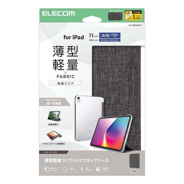 ELECOM iPadケース 11インチ(A16) 10.9インチ 第10世代 ファブリックフラップ 2アングル スタンド グレー TB-A25RWVCGY