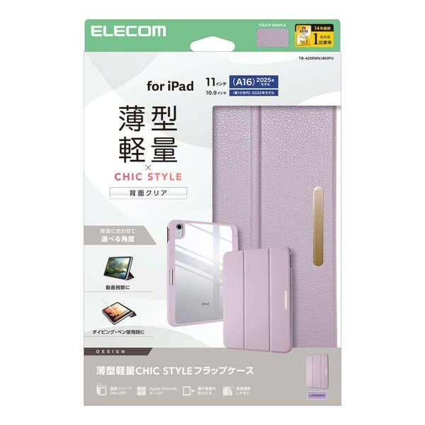 ELECOM iPadケース 11インチ(A16) 10.9インチ 第10世代 マグネット式フラップ Apple Pencil収納 背面クリア ラベンダー TB-A25RWVJM3PU