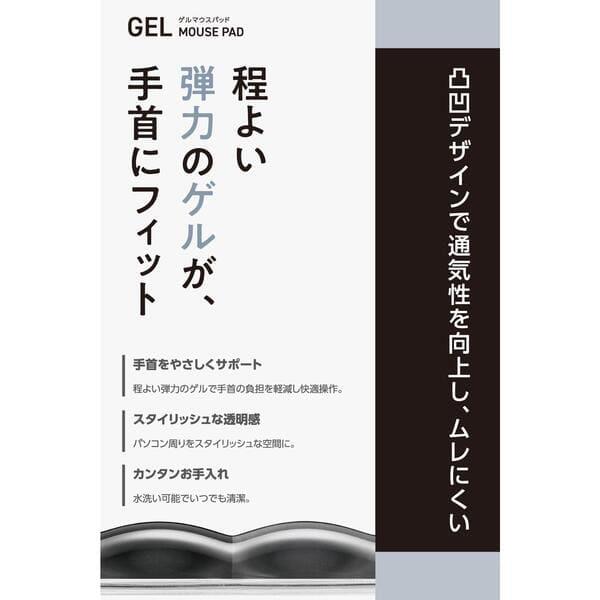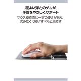 ■程よい弾力のゲルが優しく手首をサポートする、リストレスト付きマウスパッドです。