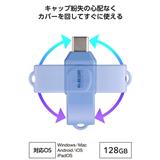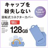 ELECOM USBメモリ 128GB USB Type-C 高速転送 回転式コネクタ ストラップホール付 セキュリティ対応 ブルー MF-CEU3128GBU