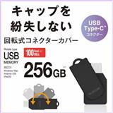 ELECOM USBメモリ 256GB USB Type-C 高速転送 回転式コネクタ ストラップホール付 セキュリティ対応 ブラック MF-CEU3256GBK