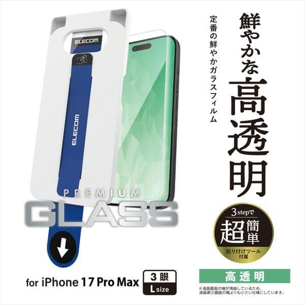 ELECOM iPhone17 Pro Max ガラスフィルム 高透明 10H 指紋防止 気泡防止 飛散防止 簡単貼り付けツール付 PM-A25DFLGGT