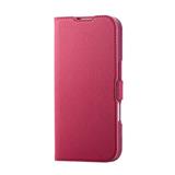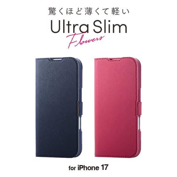 ELECOM iPhone17 ケース レザー 手帳型 マグネット 衝撃吸収 超軽量 薄型 スタンド機能付 花柄 UltraSlim ディープピンク PM-A25APLFUJPND