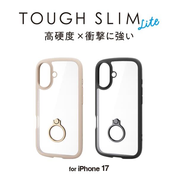 ELECOM iPhone17 ケース ハイブリッド 衝撃吸収 軽量 薄型 リング付 スタンド機能付 TOUGH SLIM LITE ブラック PM-A25ATSLFCRBK