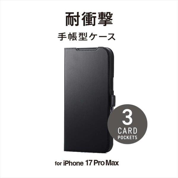 ELECOM iPhone17 Pro Max ケース レザー 手帳型 マグネット 衝撃吸収 スタンド機能付 ブラック PM-A25DPLFY3BK
