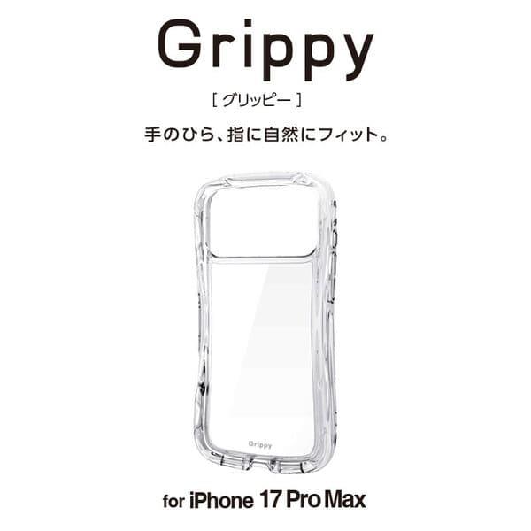 ELECOM iPhone17 Pro Max ケース ハイブリッド 衝撃吸収 磁気吸着対応メタルステッカー付 Grippy クリア PM-A25DGRPACR