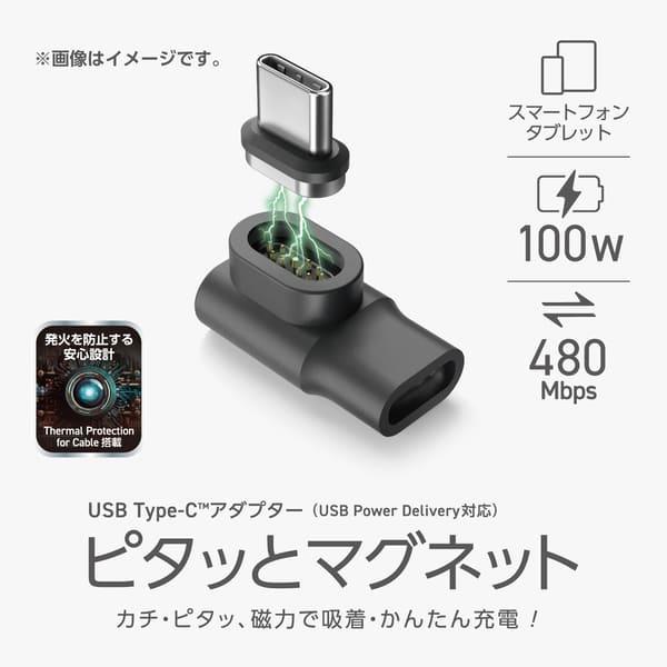 ELECOM USB-C マグネット 変換アダプタ L字型 100W PD対応 着脱式コネクタ ブレーカー内蔵 ブラック MPA-CMAADLBK