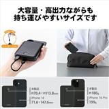 ■厚さ約16mmの手のひらサイズで、ポーチや小さなバッグ、ポケットにもすっきり収まります。ケーブルストラップ付きなので、外出時や出張、旅行でも大活躍。これひとつで、お出かけの際も気軽に持ち運べます。