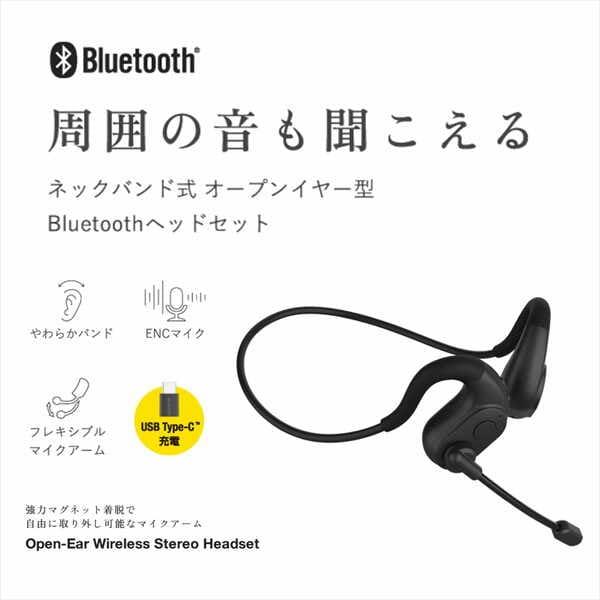 ELECOM Bluetoothヘッドセット オープンイヤー ネックバンド マイク付ワイヤレスイヤホン ENCノイズキャンセリング ブラック LBT-HSOE01BK