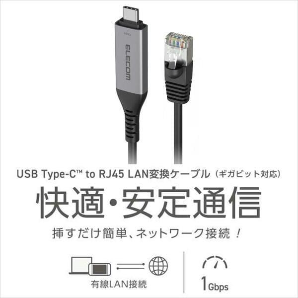 ELECOM USB Type-C 有線LAN変換ケーブル 1Gbps対応 5m ドライバ不要 Gigabit イーサネット 安定通信 ブラック LD-CL1G50BK