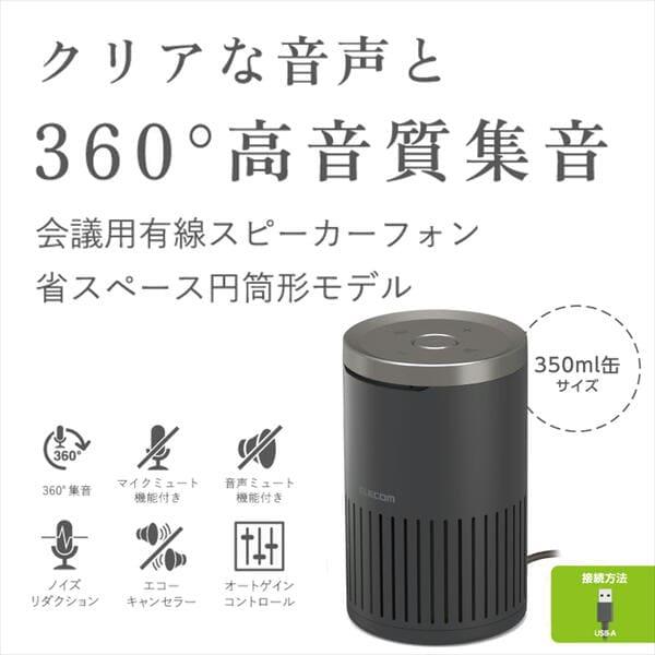 ELECOM 会議用スピーカーフォン 有線 USB-A Web会議用 4~6人 360度全方向集音 エコーキャンセラー ブラック HS-SP02M2BK