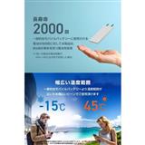 猛暑や極寒の環境でも使用でき、発火しにくい高い安全性と約2000サイクルの長寿命、優れた携帯性を実現。