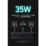 出力USB Type-C1/C2:最大35W(5V/3A、9V/3A、12V/2.91A、15V/2.33A、20V/1.75A)・PPS最大33W(5~11V/3A)、USB-A1:最大22.5W(5V/2.4A、9V/2A、10V/2.25A、12V/1.5A)、複数ポート同時使用時:合計最大20W(5V/4A)
