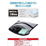 ■難燃性試験をクリアした生地を表と裏で二重に使い、収納物が発火した場合でも燃えにくい仕様です。