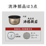 発熱性の高い「大火力 沸騰鉄釜」と本体側に熱を閉じ込める「全周断熱構造」で大火力の熱をすばやく伝えます。