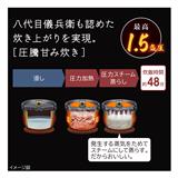 圧力&スチームの日立!最高1.5気圧の大火力で沸騰、圧力&スチームで蒸らす。米老舗八代目儀兵衛の土鍋釜の炊き技を炊飯器の技術で実現。