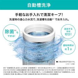 ※1〈「次亜除菌」コースによる衣類除菌〉[ 試験機関](一財)日本食品分析センター[ 試験成績書発行年月日]2022年2月28日[ 試験成績書発行番号]第21020926001-0101号[ 試験方法]菌液付着試験布の生菌数測定[ 除菌方法]次亜除菌錠剤を用いた「次亜除菌」コースによる[ 対象部分]洗濯・脱水槽内の衣類[ 試験結果]菌の減少率99.9%以上(Panasonic換算値)。衣類上のにおいの原因菌において。全ての菌に効果があるわけではありません ※2〈「次亜除菌」コースによる槽除菌〉[ 試験機関](一財)日本食品分析センター[ 試験成績書発行年月日]2022年11月15日[ 試験成績書発行番号]第22053810001-0101号[ 試験方法]洗濯・脱水槽および外槽に取り付けた菌液付着試験布の生菌数測定[ 除菌方法]次亜除菌錠剤を用いた「次亜除菌」コースによる[ 対象部分]洗濯・脱水槽および外槽[ 試験結果]菌の減少率99.15%以上(Panasonic換算値)