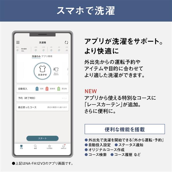 ※4 NA-FA12V3における、おまかせコース6 kgと時短コース6 kgでの洗濯使用水量差約10 L。