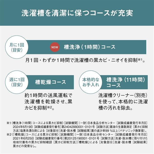 ※2 ●「槽洗浄(􏚲􏚲時間)」コース/洗濯槽クリーナー(別売)を使って、本格的に洗濯槽の汚れを除去。