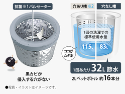 洗濯槽と外槽の間のムダ水をカットして節水にも貢献