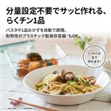 食品から発生する蒸気量で、食品の状態を検知する「らくチン!センサー」により、分量設定不要で1~4人分までパスタや1品おかずを自動で調理。耐熱性のプラスチック製保存容器※が調理に使えるので、作りおきにもぴったり。冷凍食材が使えるメニューにも対応。