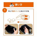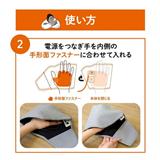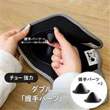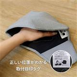 本体内側にある面ファスナーに握手パーツをつけ、手を包みエアバッグではさむことで手をケアできます。