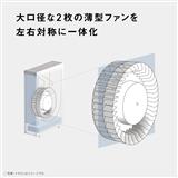 大口径な2枚の薄型ファンを左右対称に一体化。
