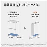 ※1 【比較条件】同社同風量帯における機種での設置面積との比較。【設置面積】23年発売F-VXW70 1,023cm2、25年発売F-PX70C 475cm2 ※2 直射日光やエアコンの風/熱が当たる場所、毛足の長いじゅうたんの上、テレビやラジオの近くには置かないでください。 ※3 本体を倒して(横置きで)使用しないでください。