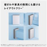 本体の後方・左右も2cmずつ空ければ、設置可能。部屋のすみにも、家具のレイアウトを邪魔することなく設置可能です。