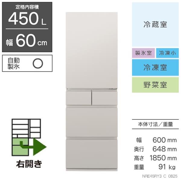 【クーポン対象外】  Panasonic 冷蔵庫 [AIエコナビ][奥まで見えるフルオープン]【5ドア/右開き/450L/マットライトベージュ】 ★大型配送対象商品 NR-E45RY3-C
