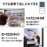 トップユニット方式によって、冷蔵室の最上段は手が届きにくいエリアが減り、食品の管理がしやすくなっています。