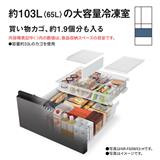 買い物カゴ、約1.9個分も入る大容量冷凍室。冷凍食品や作り置きおかずをたっぷり収納できます。