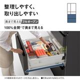 ベアリング式レールで重さを分散するので、たっぷり入れてもスムーズに開け閉めできます。長く使ってもずっと軽々。