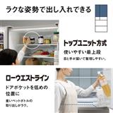 トップユニット方式によって、冷蔵室の最上段は手が届きにくいエリアが減り、食品の管理がしやすくなっています。