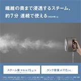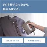 立ち上がり時間約19秒で使えて、平均約15g/分の浸透スチームで手軽ながらもしっかりシワをのばせる。