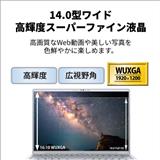 約1.3kgの軽量ボディと14.0型の広々とした画面を両立したモバイルノート。持ち運びやすさと作業の快適さを兼ね備え、ビジネスや学習、エンタメまで幅広く活躍します。