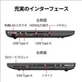 各種USBはもちろん、有線LANやSDカードまで、メインパソコンにふさわしい充実のインターフェースを装備しています。付属のACアダプタはUSB Type-Cなので、他のデバイスとの共用も可能です。