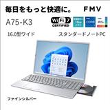 富士通 ノートPC FMV Note A A75-K3 【16インチ/Windows11/Core i7-1355U/メモリ16GB/SSD256GB/Microsoft Office搭載/ファインシルバー/2025年10月モデル】 FMVA75K3SA