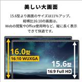 15.6型と同等の本体幅サイズながら、画面サイズは11%アップした、明るい室内でも見やすくなった高輝度な液晶を搭載。縦横比16:10の画面は、Webの閲覧やOffice使用時など、縦に長く表示できて快適です。