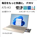 富士通 ノートPC FMV Note A A75-K3 【16インチ/Windows11/Core i7-1355U/メモリ16GB/SSD256GB/Microsoft Office搭載/ベージュゴールド/2025年10月モデル】 FMVA75K3GA