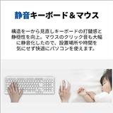 押し心地の良い約3mmのキーストロークを確保して、キーごとの反応過重までこだわり抜いたキーボードは、打鍵音も大幅に静音化。クリック音を大幅に静音化した静音マウスと合わせ、Web会議中の操作も夜中のWeb閲覧も周囲を気にすることなく快適にパソコンを使えます。