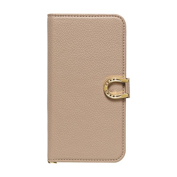 上品な型押しレザーに幸運のモチーフ"ホースシュー"が輝く大人シンプルな手帳型iPhoneケース。