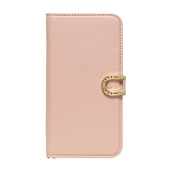 上品な型押しレザーに幸運のモチーフ"ホースシュー"が輝く大人シンプルな手帳型iPhoneケース。