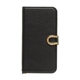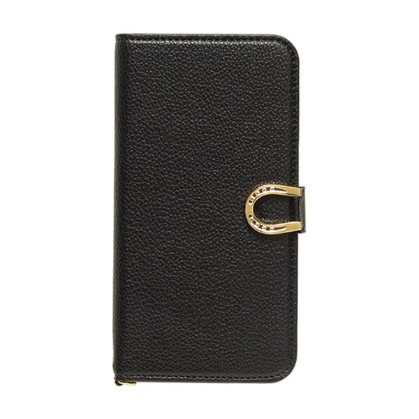 上品な型押しレザーに幸運のモチーフ"ホースシュー"が輝く大人シンプルな手帳型iPhoneケース。
