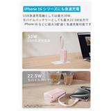 充電器としては最大30W、モバイルバッテリーとしても最大22.5W出力でiPhone 15シリーズにも最大3倍速く急速充電が可能です。また本体表面にはディスプレイを搭載し、バッテリーの残量や使用状況をリアルタイムかつ一目で確認できます。※一般的な5W出力の充電器でiPhone 15を0%から30%まで充電した場合との比較(Anker調べ)